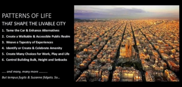 There are a number of what Johns calls “big dumb ideas” about how to plan a city, and some of them, depending on their appropriateness to the topography, result in magnificently livable cities. But the most important principle, Johns asserts, is to understand and design for patterns of life – tame the car and enhance alternatives; create a walkable and accessible public realm; weave a tapestry of experience; control building bulk, height and setbacks; etc.